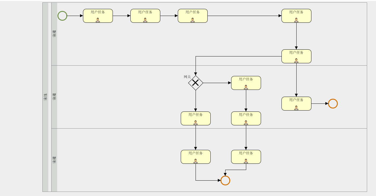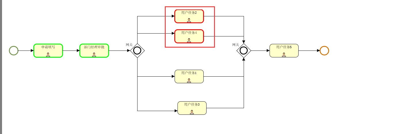 并行网关:并行网关需要成对使用,并行网关中的所有分支都会执行,只有并行网关中的所有分支都被处理后流程才可以通过并行网关走向并行网关的下一个节点;