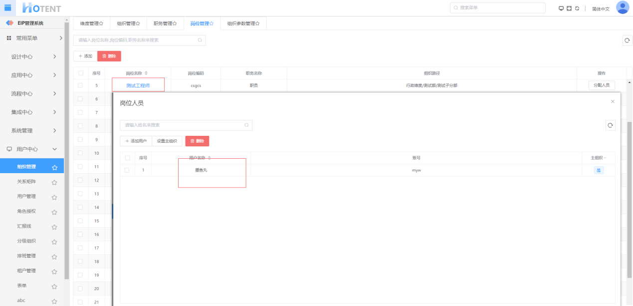 属于“部门经理”岗位的用户如下所示: