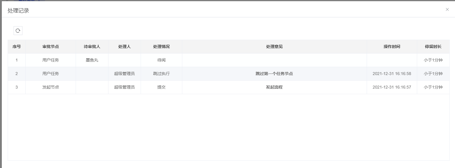 上面的图中给节点“用户任务”配置的节点人员是“当前登录用户”,启动流程,流程流转到节点“用户任务”,用户“超级管理员”登录系统处理节点“用户任务”的任务后,节点“用户任务”产生任务,任务的待执行人是“超级管理员”,即当前登录用户。
