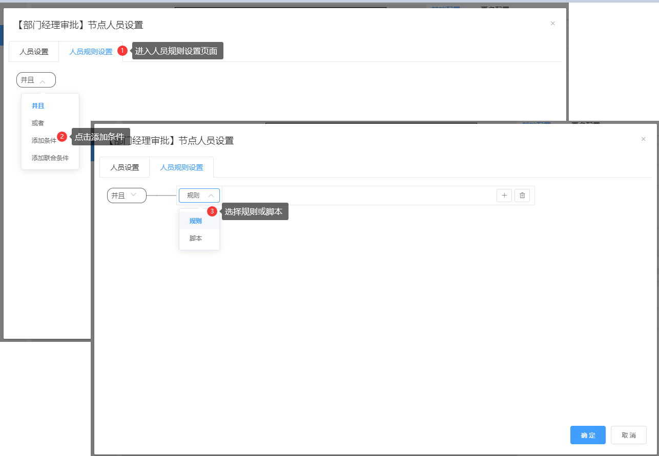 人员规则设置:流程符合这里设置规则时,才会使用人员配置中设置的人员规则;