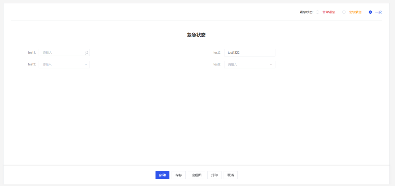 1、 显示紧急状态:即在流程启动时可在表单中设置紧急状态(紧急状态有三种:非常紧急、比较紧急、一般),默认选择为一般,如下图: