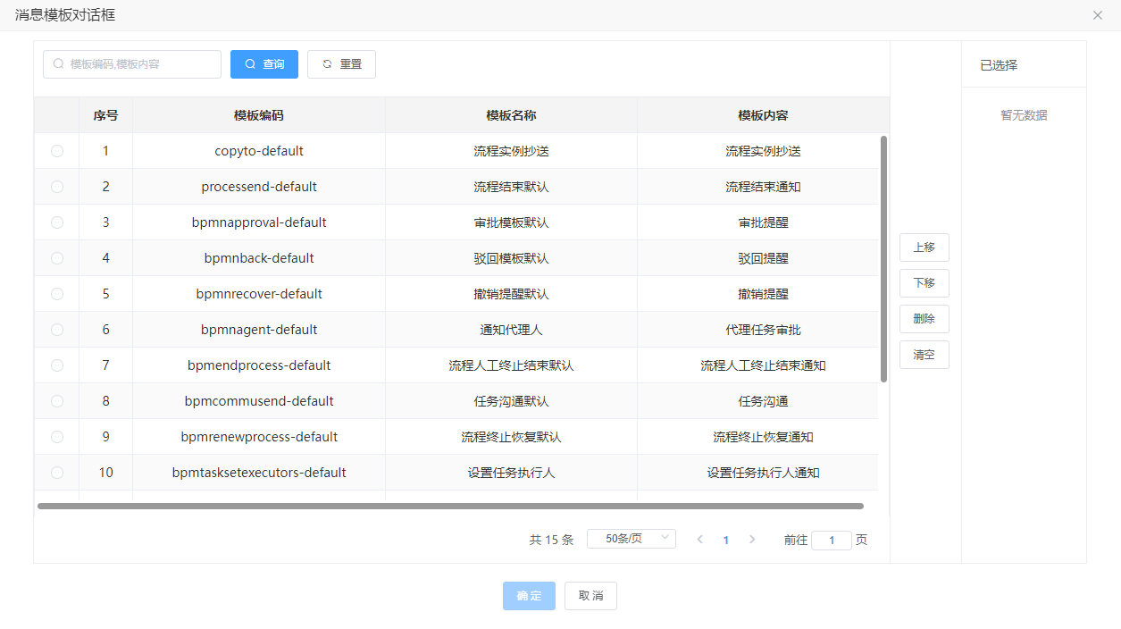 纯文本:可以选择消息模板对话框,该模板在管理端-【辅助功能】-【消息模板】可进行编辑维护
