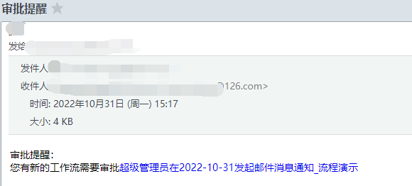 通知类型:流程产生待办时的通知类型(用于正式流程,即“生产状态”处于正式的流程)(此处设置测通知类型,在每个节点产生的待办都会发送消息通知给待审批人)。