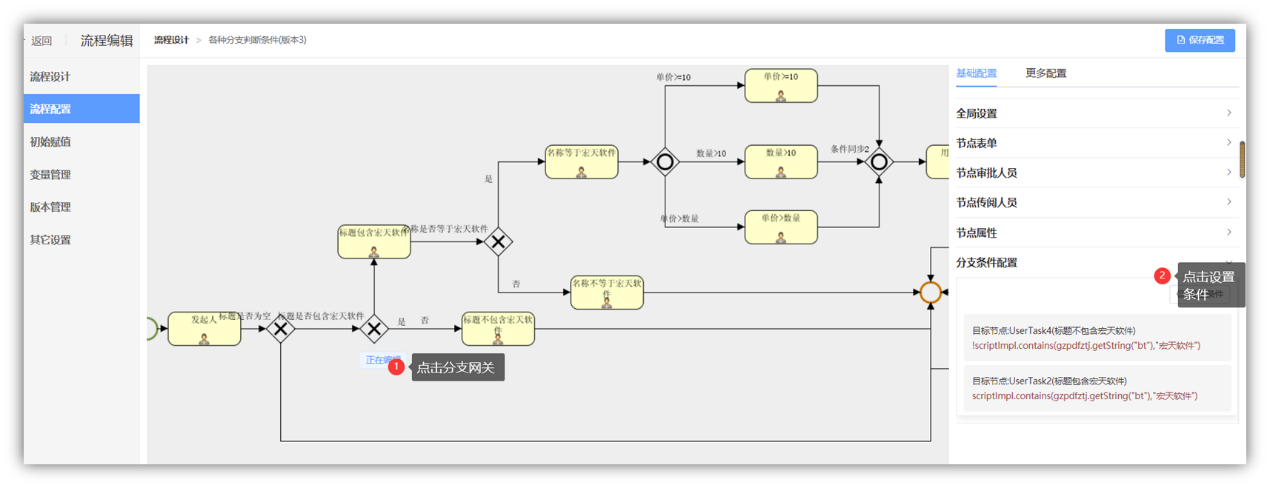 本文主要对分支网关的条件配置规范说明