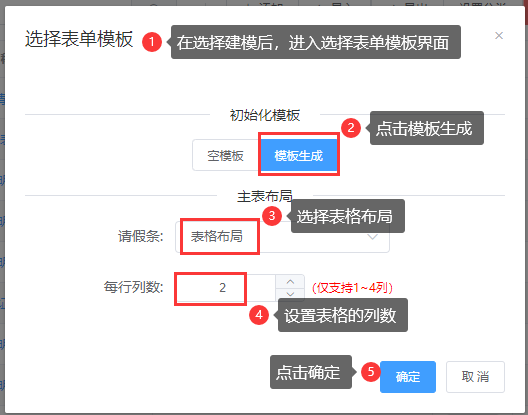 ① 在新增表单时,可在选择表单模板时,选择“表格布局”,按表格布局直接生成表单,如下图;