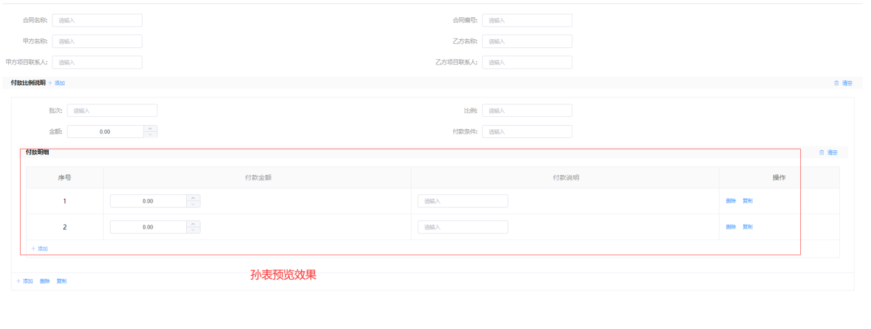 列表式布局,孙表所有字段一行排列展示