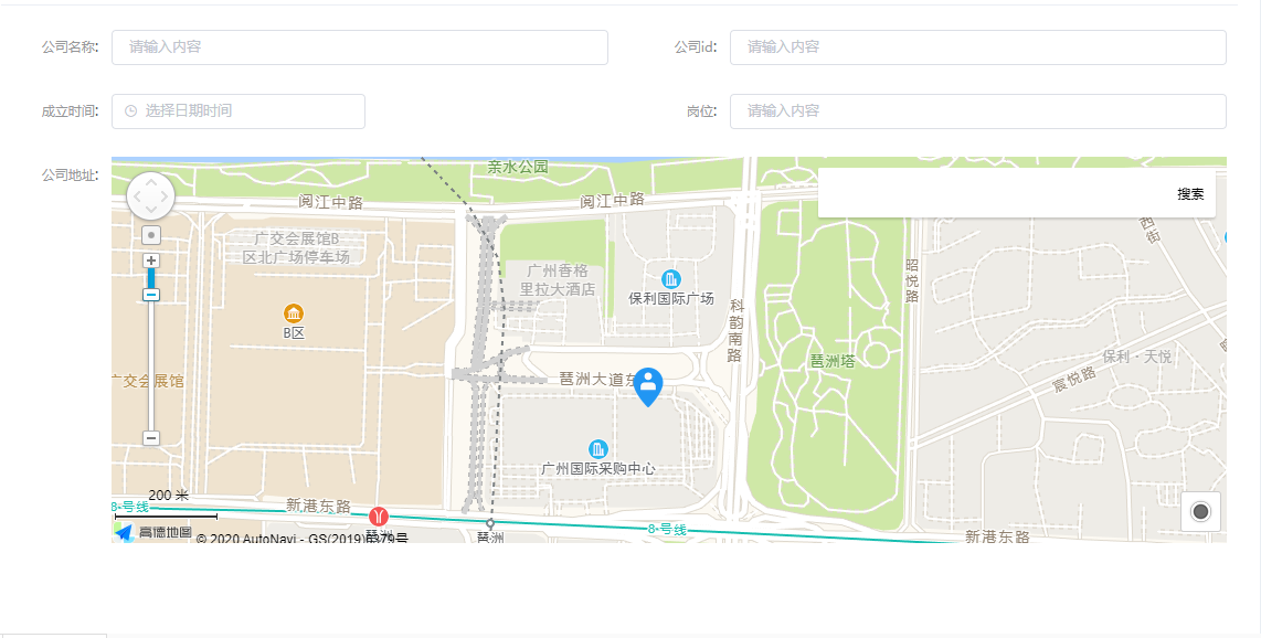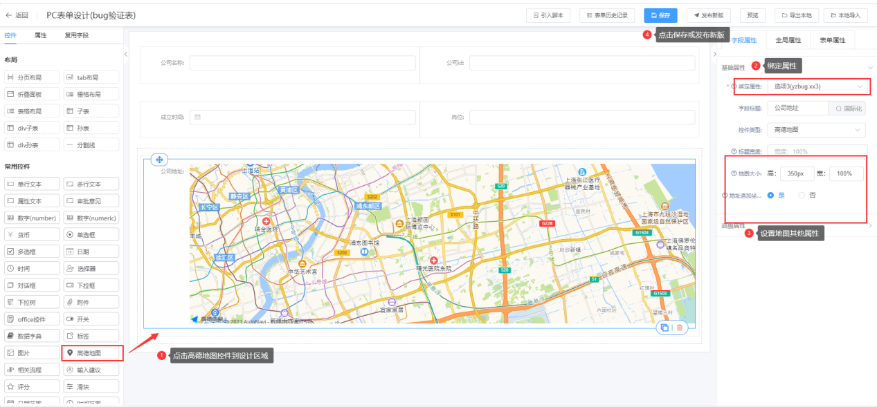 地图控件,在地图控件中输入地址后,可将地址回填到表单字段中