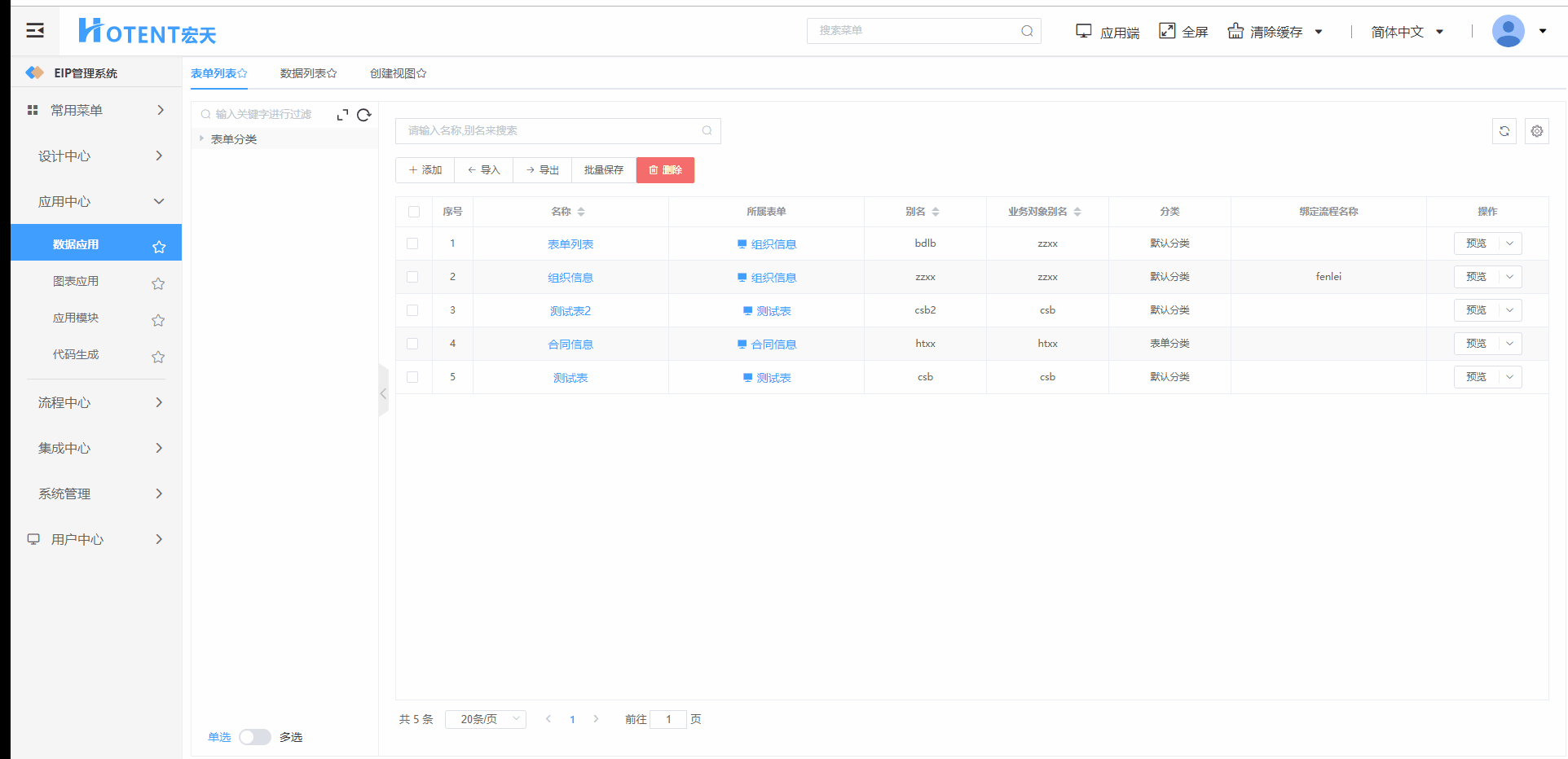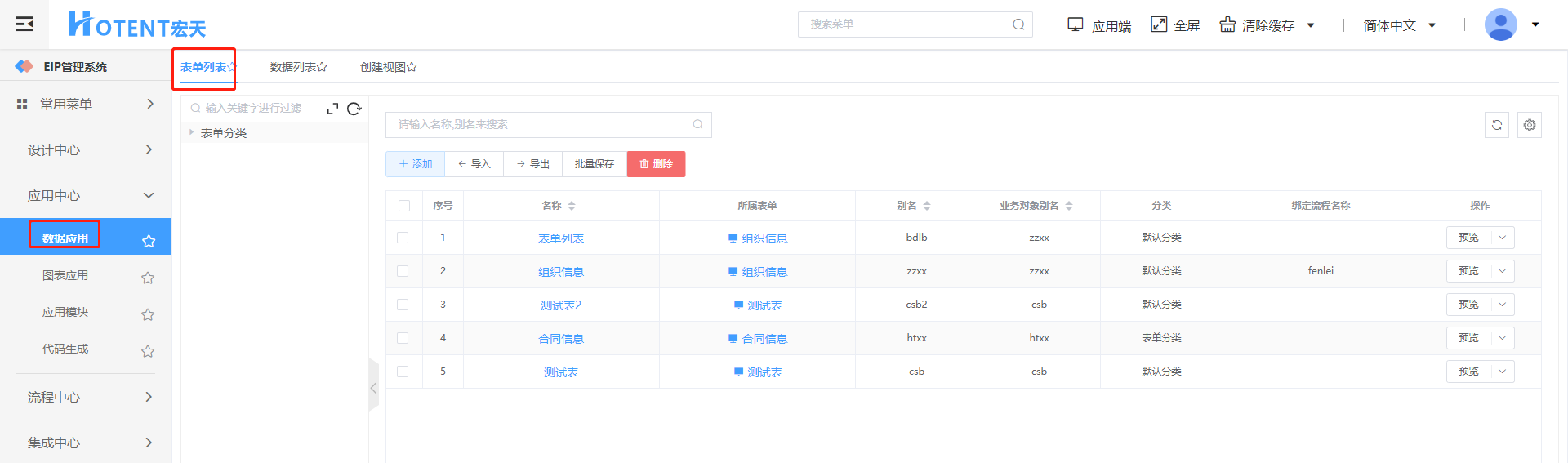 【数据应用】-【表单列表】-【添加】-选择表单进入数据列表配置页面