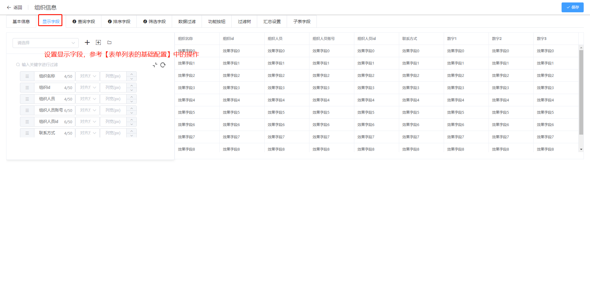 2.显示字段:报表列头字段