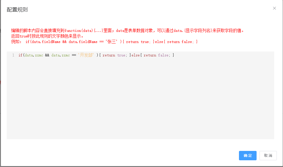 if(data.zzmc && data.zzmc == '开发部' ){ return true; }else{ return false; }
