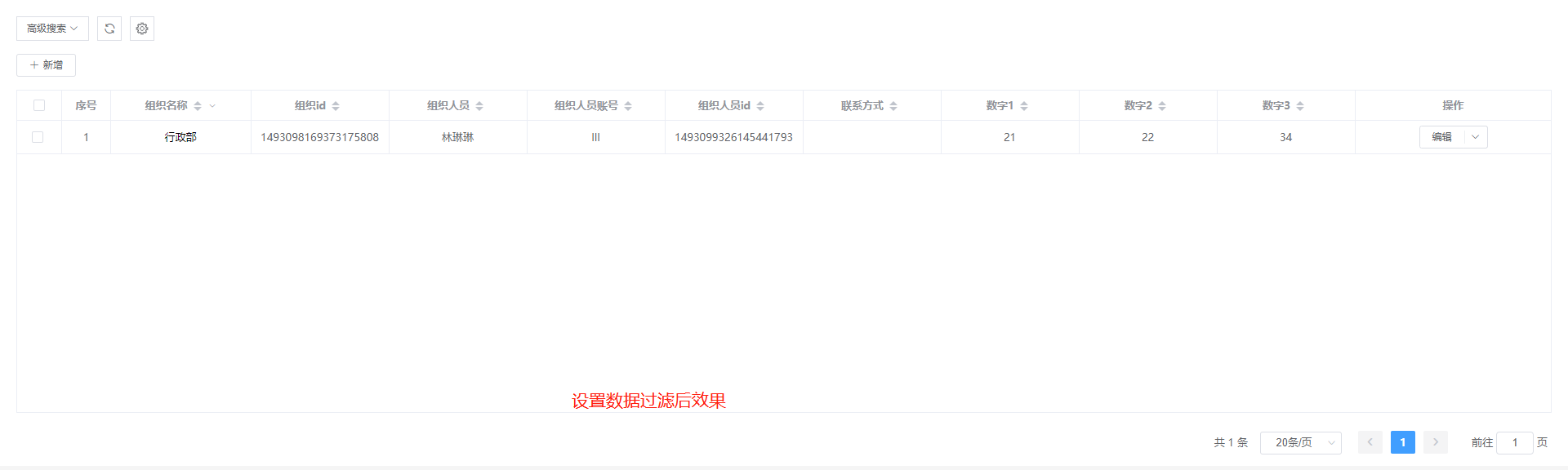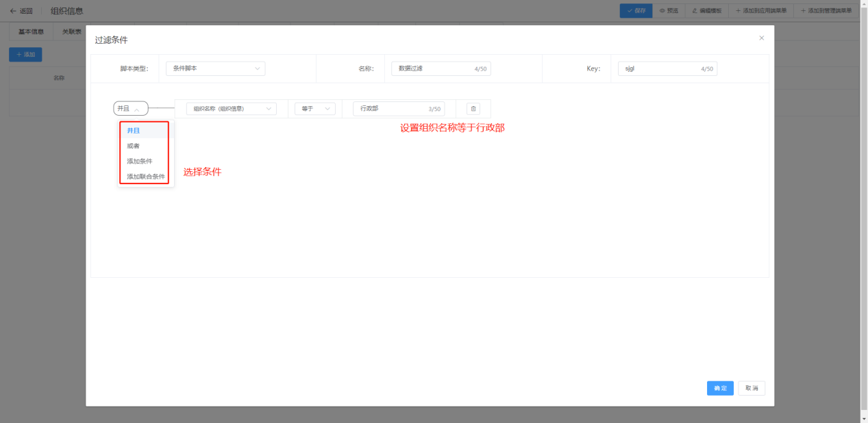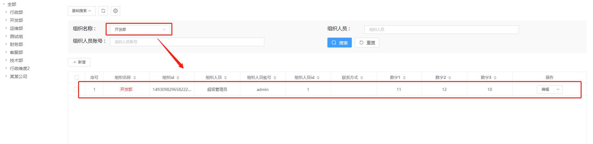 实例:只显示组织名称为行政部的数据