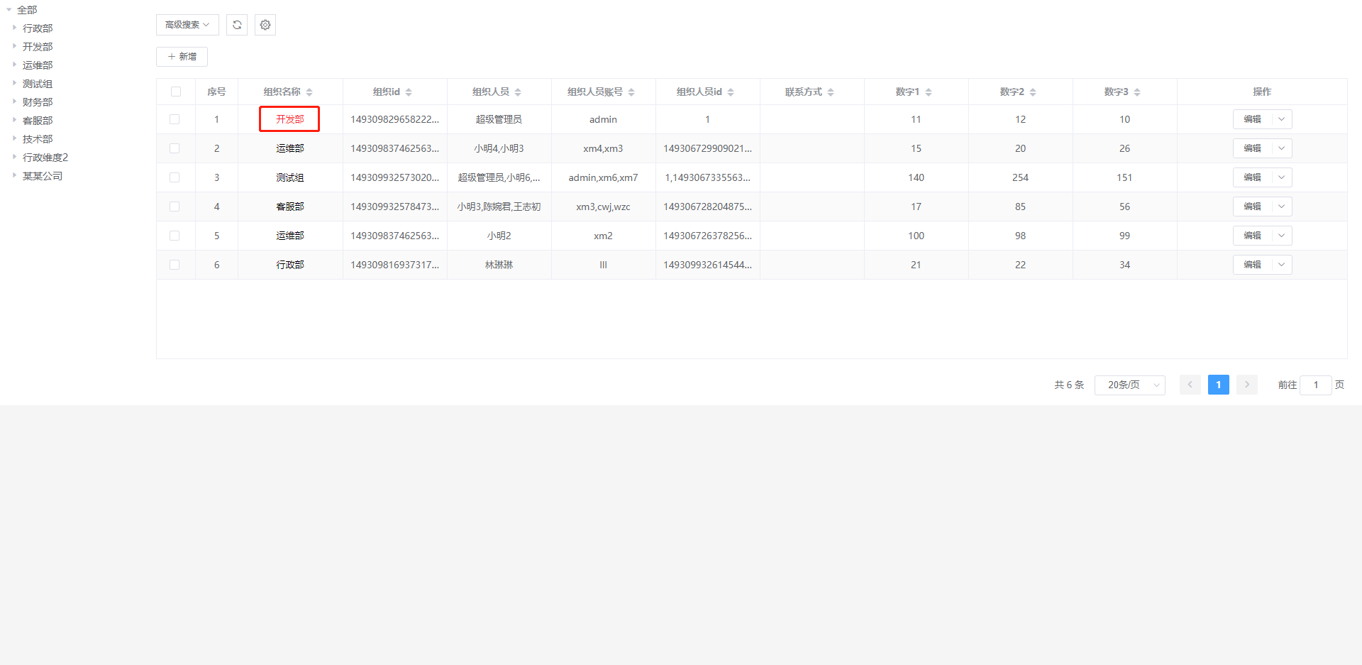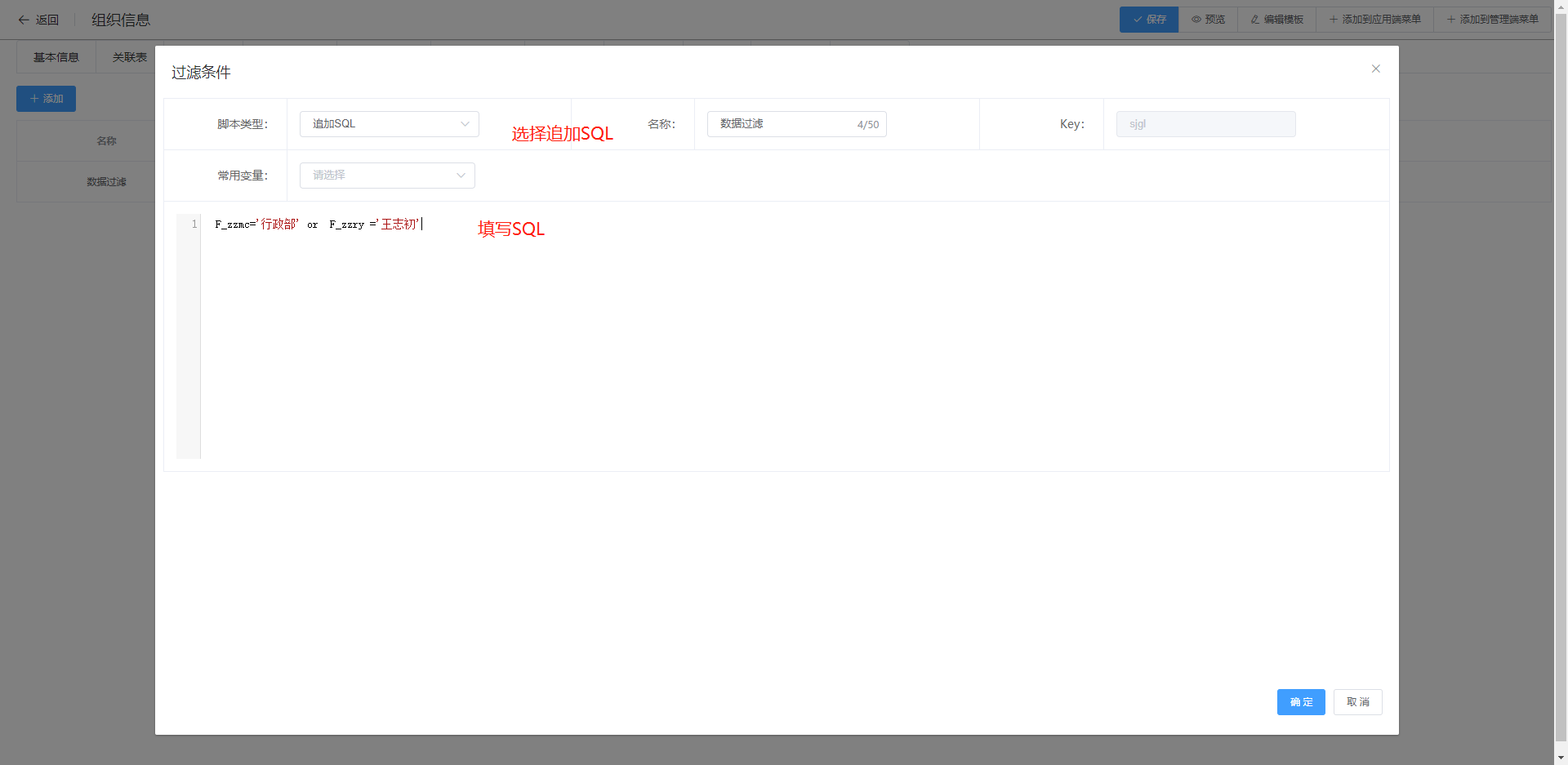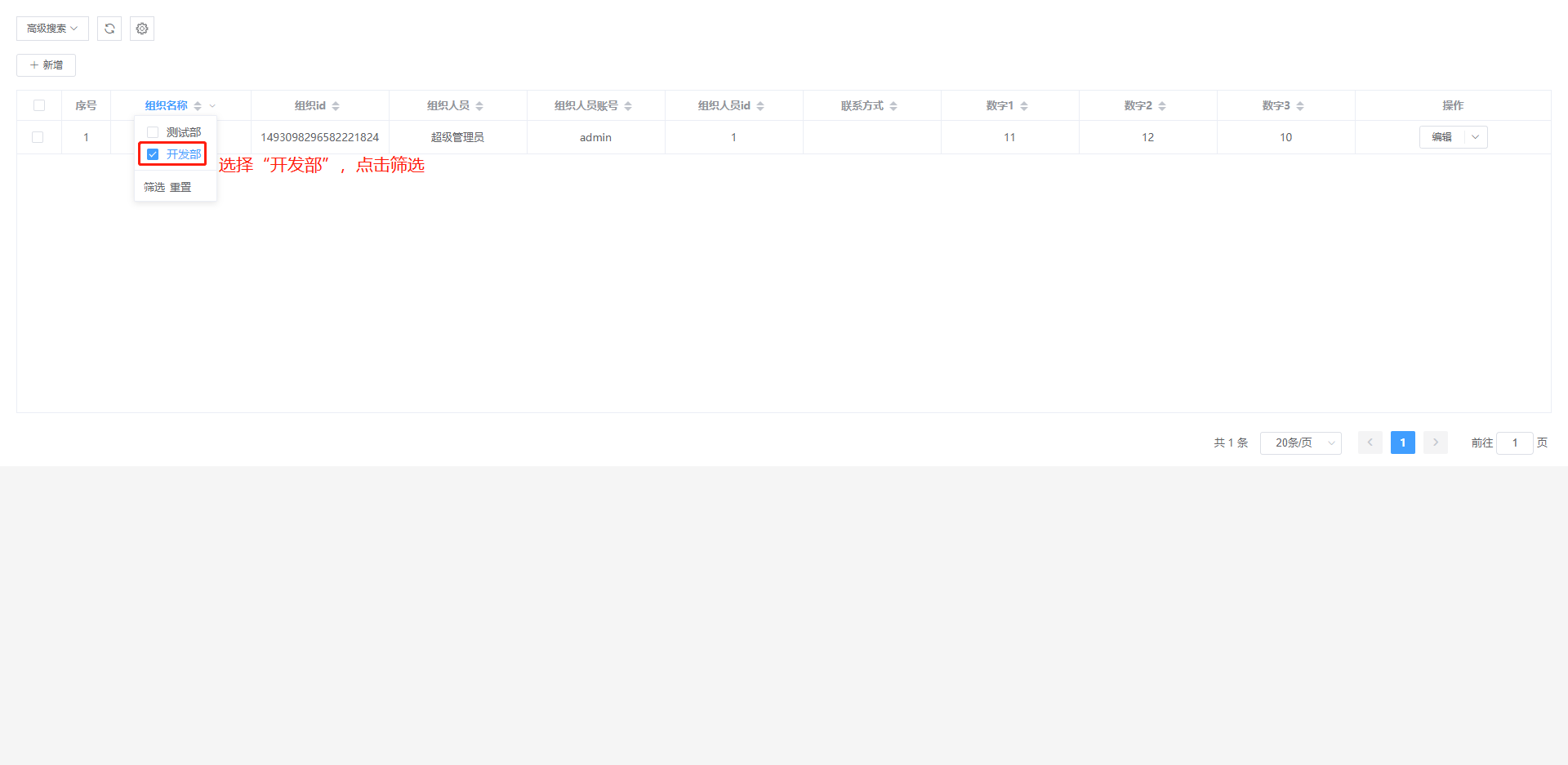 实例:只显示组织名称为行政部的数据