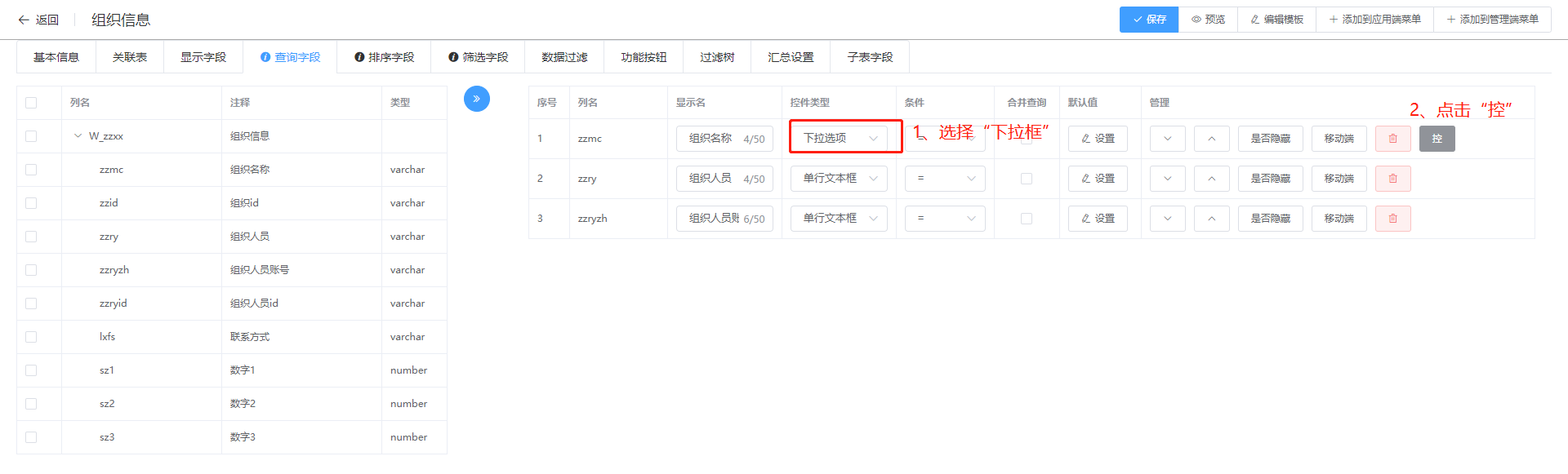 3.查询字段:报表条件/搜索字段