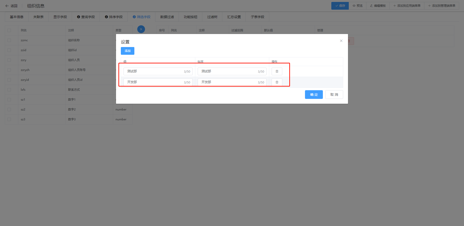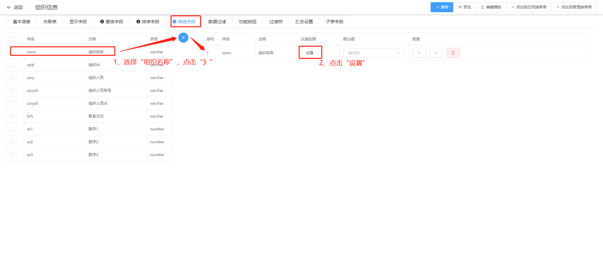 2.筛选字段设置