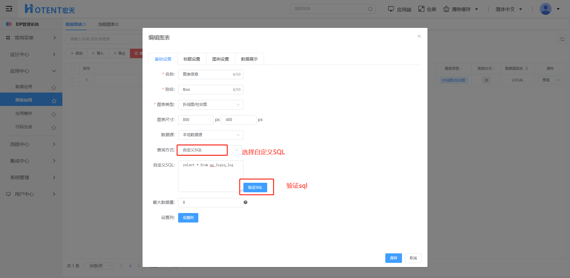 第二步:填写图表的信息并点击验证sql