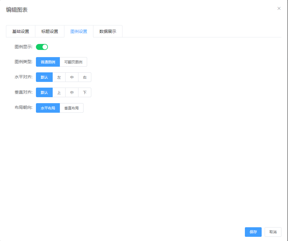 图例配置:即设置图表的图例及图例的显示类型等属性如下图: