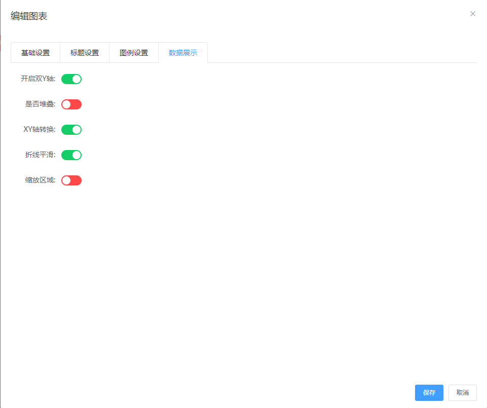 注:不同的图表类型有不同的数据展示设置,此图截图为折线图/柱状图的数据展示设置。