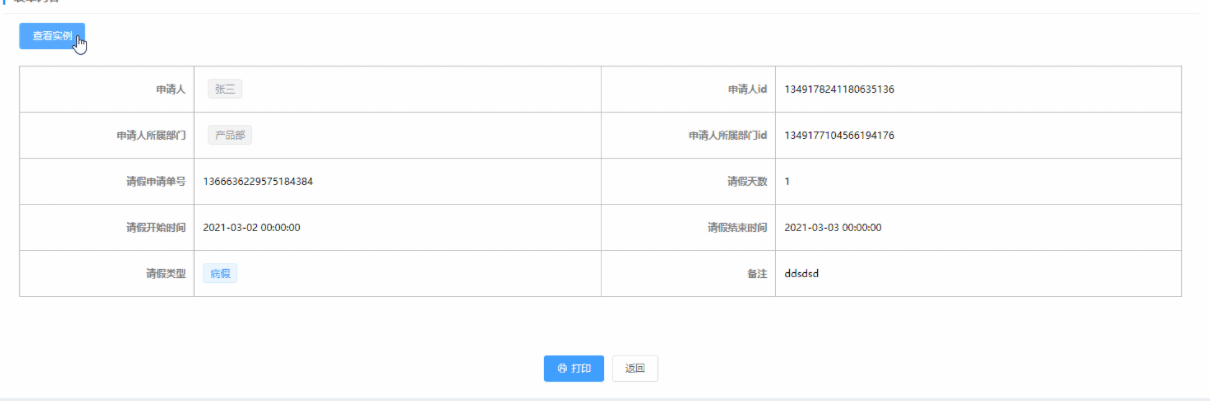 请假单号不为空,可直接跳转到查看实例页面: