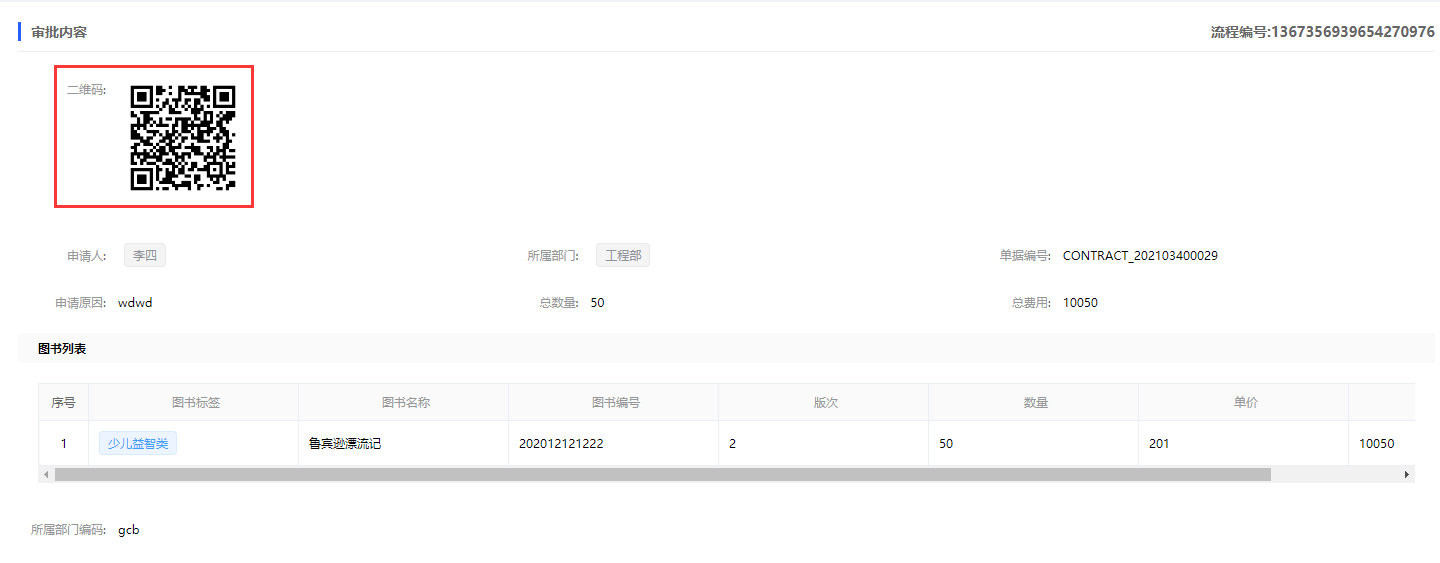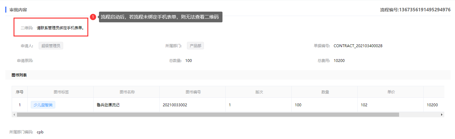 流程启动后会自动生成二维码,用手机扫码即可查看该流程进度,审批情况