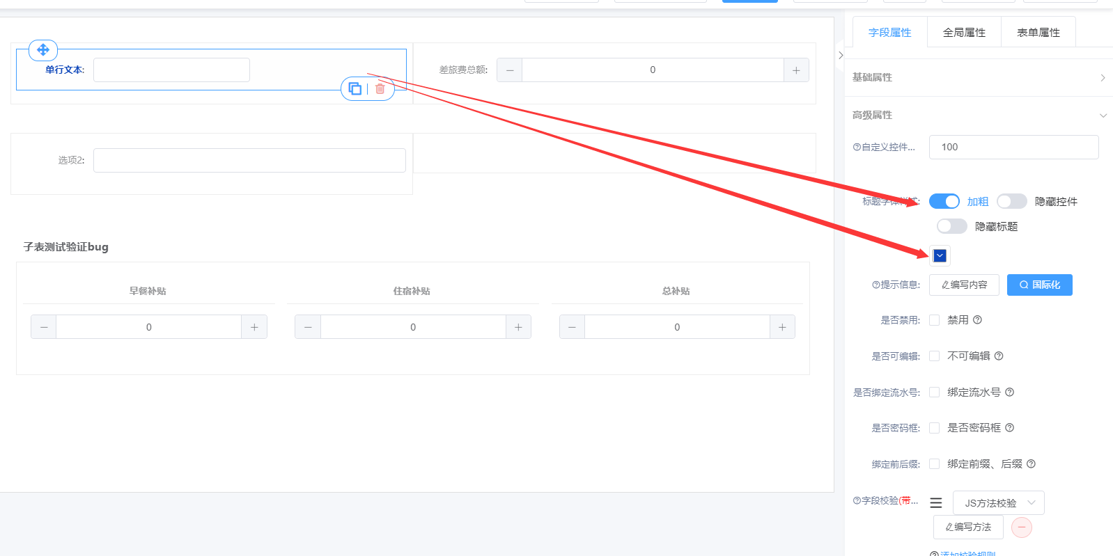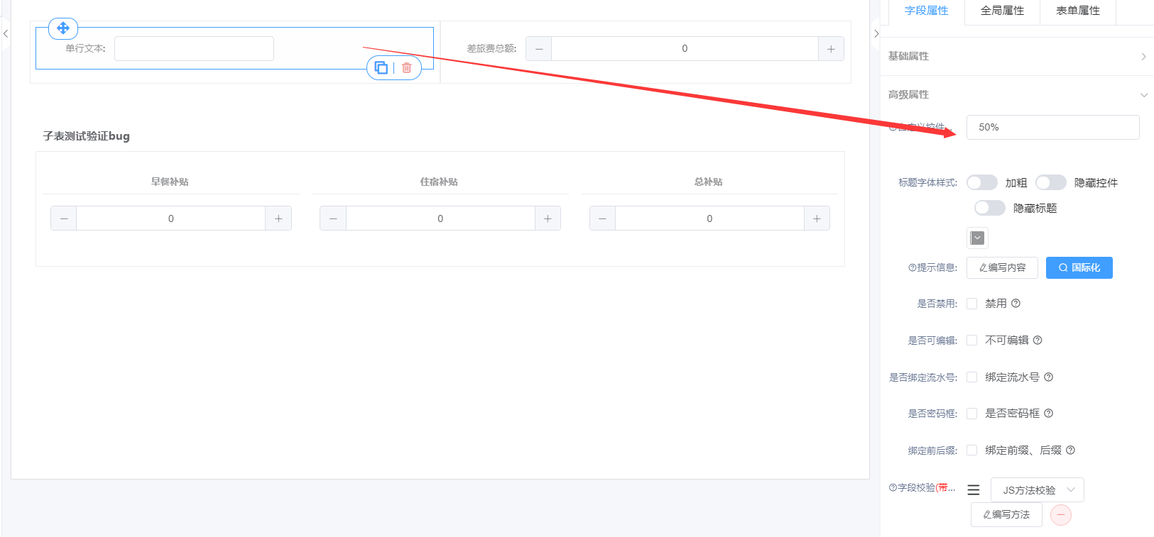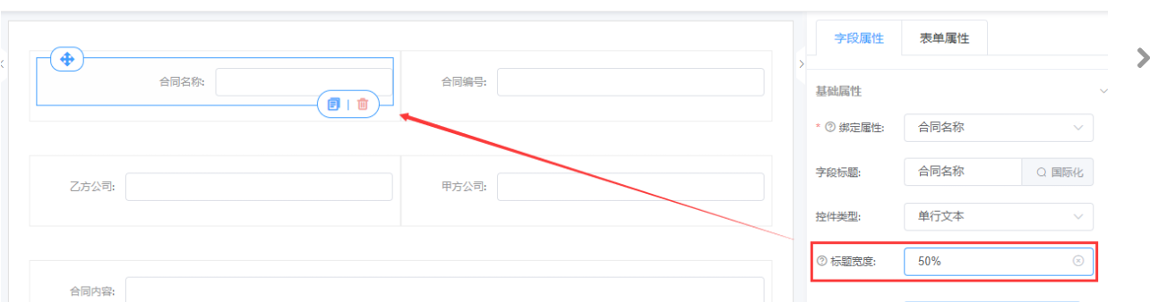 字段标题:该控件在表单显示的标题;默认获取控件绑定属性的名称,可修改;