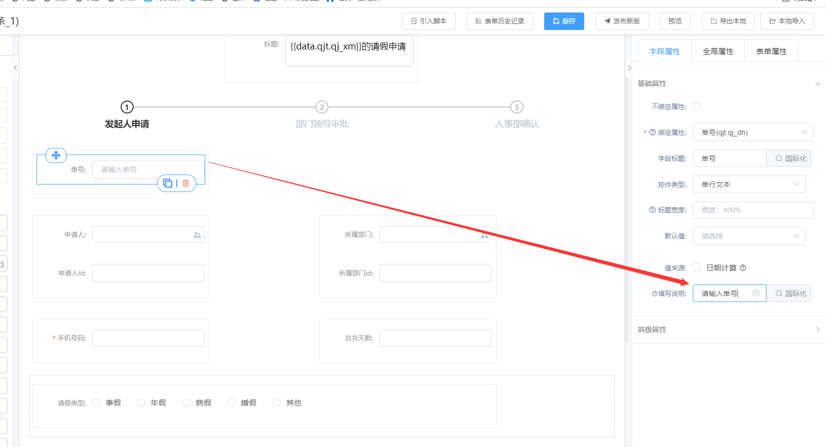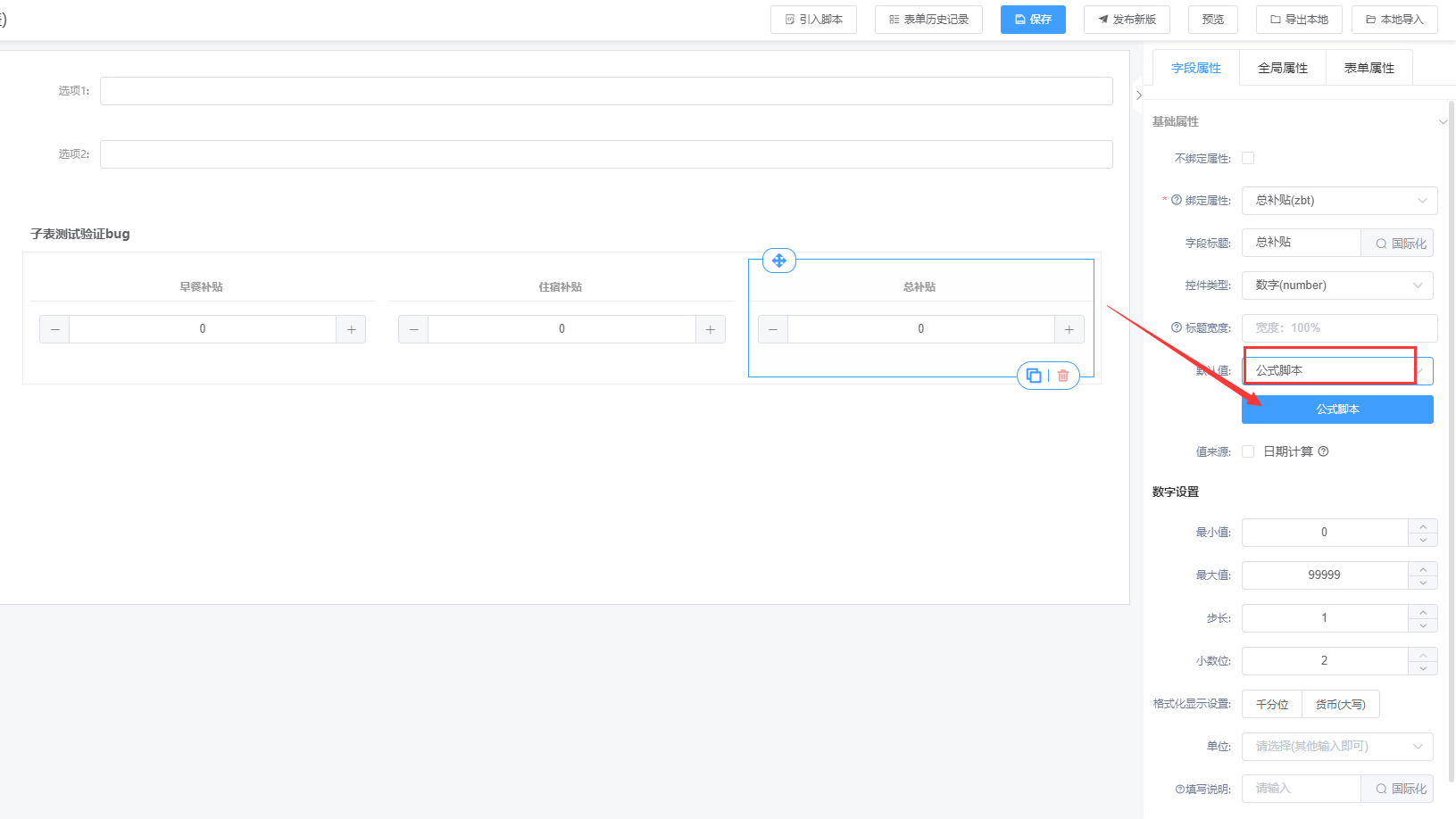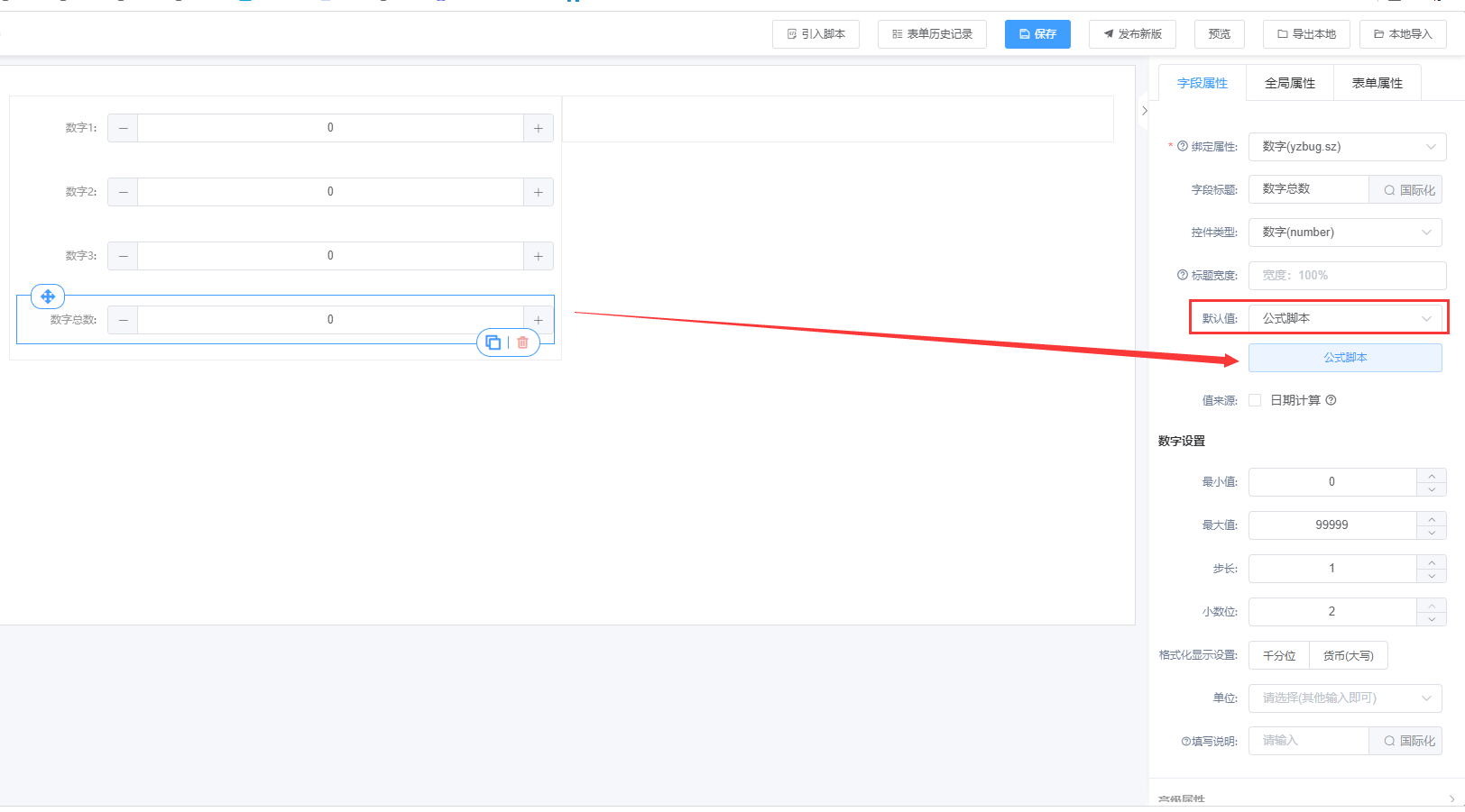 · 公式编辑:对该控件设置计算公式,一般适用于单行文本、数字控件等;