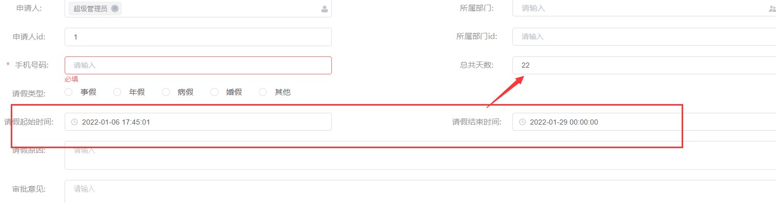 · 日期计算:将两个日期相减的值回填到该字段中;