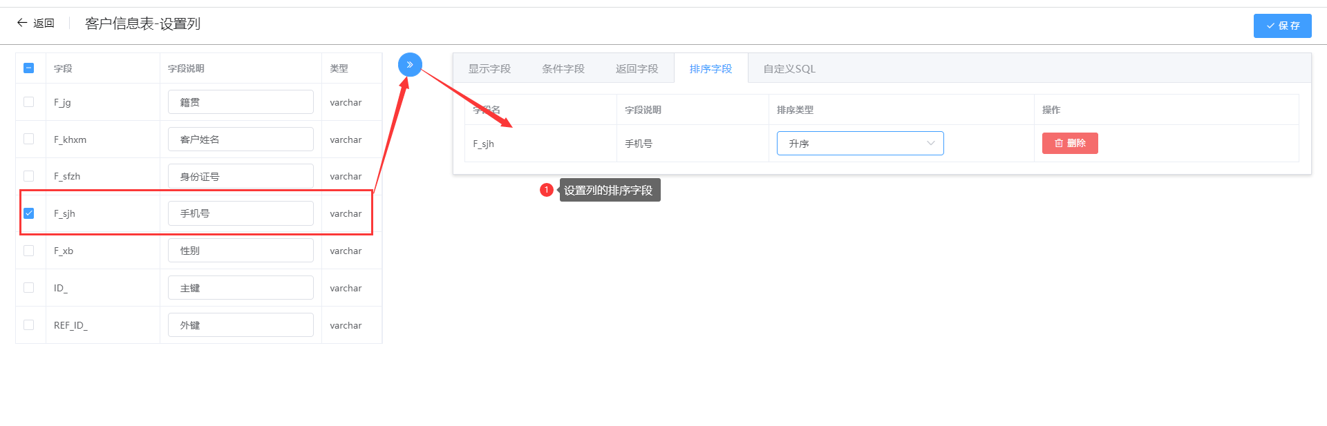 2.点击设置列,可修改显示字段、条件字段等属性;