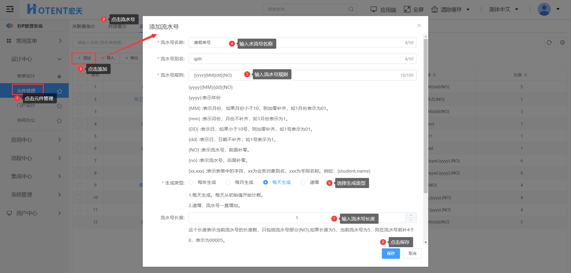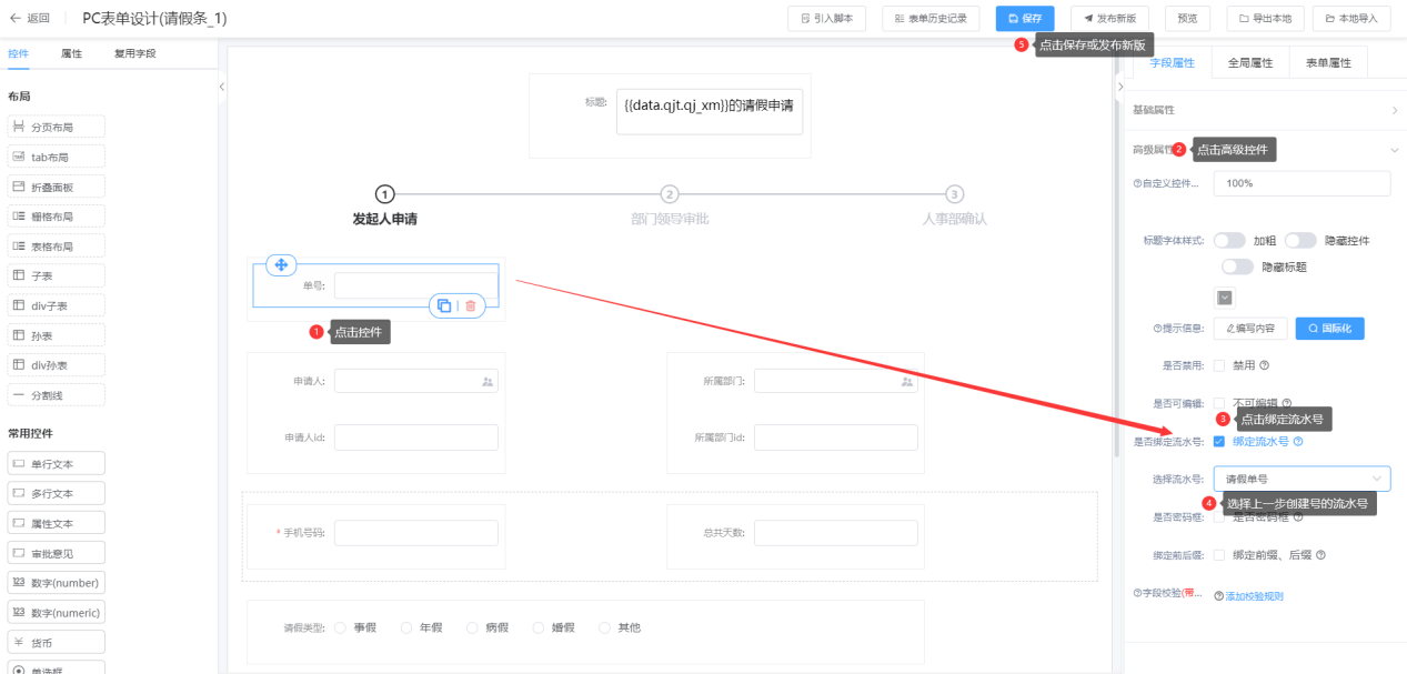 2. 流水号绑定表单的步骤在【业务表单】中的控件说明有详细介绍;