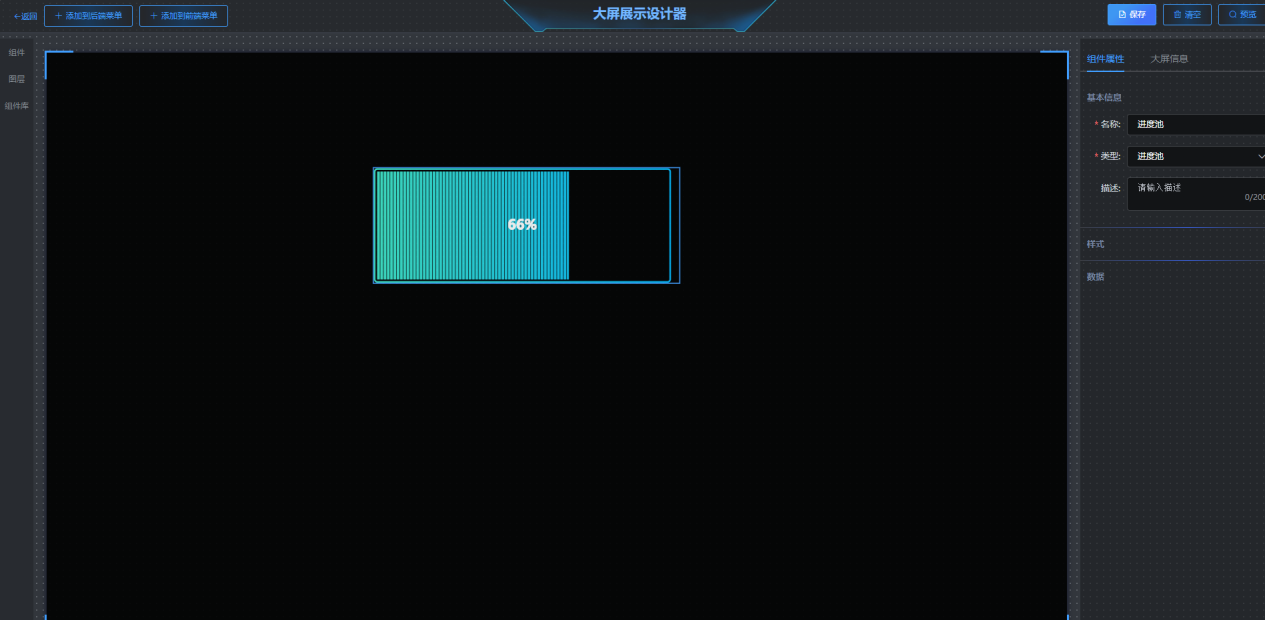 进度池支持自定义进度池的文字颜色、边框以及提示框文本和位置等配置项,适用于在可视化应用中直观地展示工作任务的进度情况。如图所示: