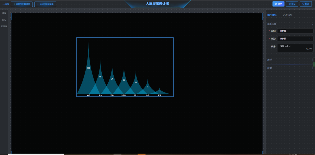 锥形柱图是特殊的柱状图,他将根据数值大小,降序排列锥形柱,适合排名类数据展示。如图所示: