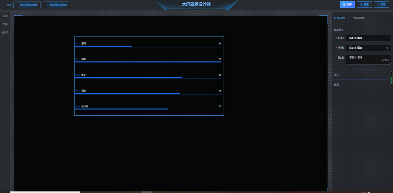 排名轮播表同轮播表类似,也可以选择单条轮播或整页轮播。 如图所示: