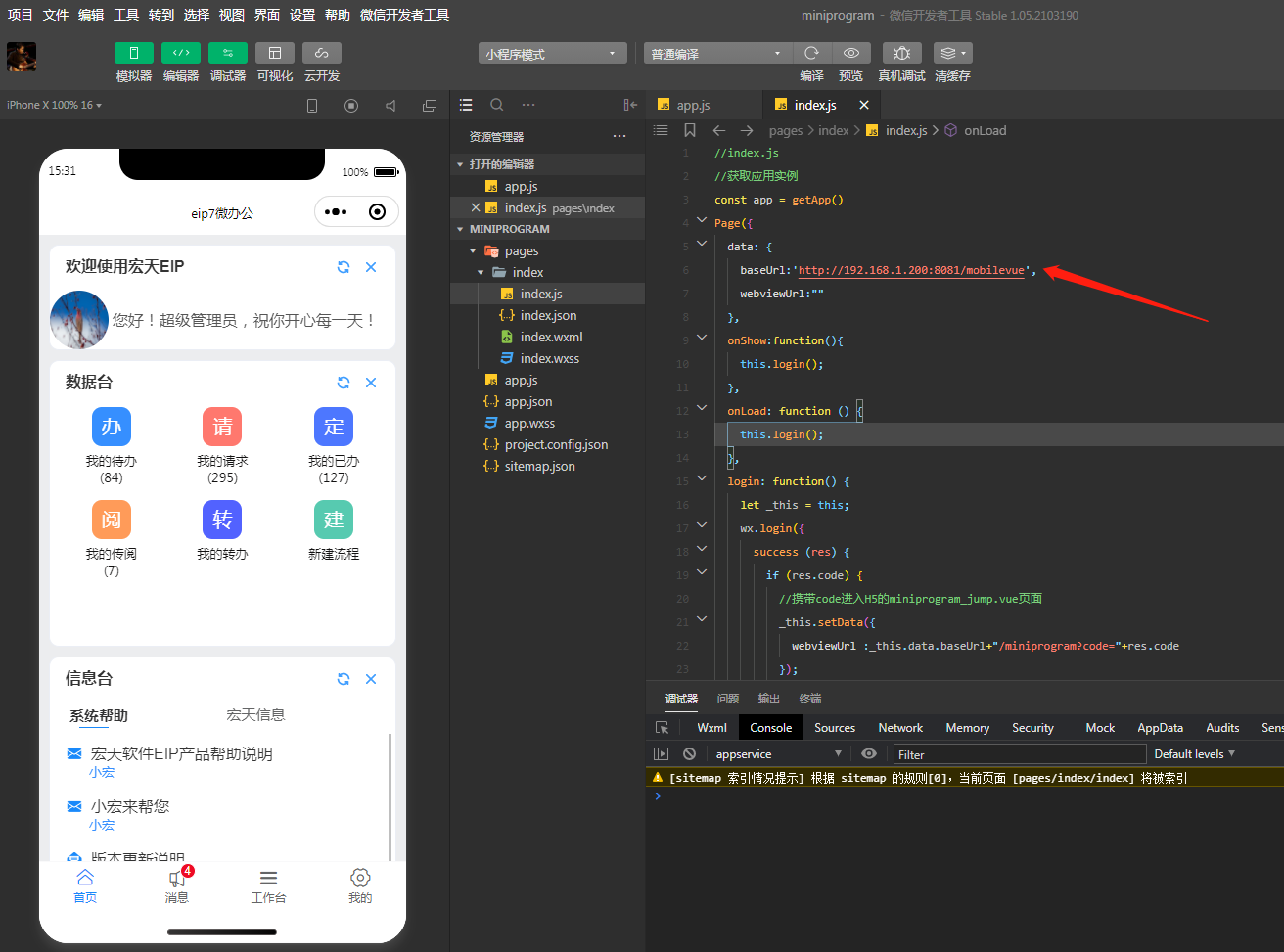 打开pages/index.js文件,将baseUrl的值改成Eip7移动端部署的地址。注意,地址结尾无需斜杆/。