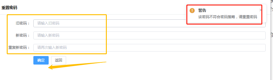 - 如果登录的用户不符合密码策略,则会跳出警告窗口,提醒用户更换新密码