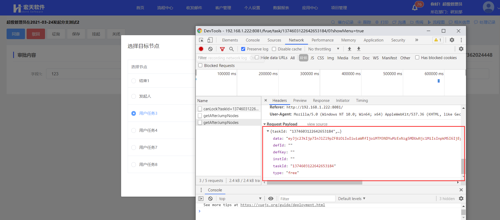 提交流程时,F12查看参数值,配置到接口调试中即可