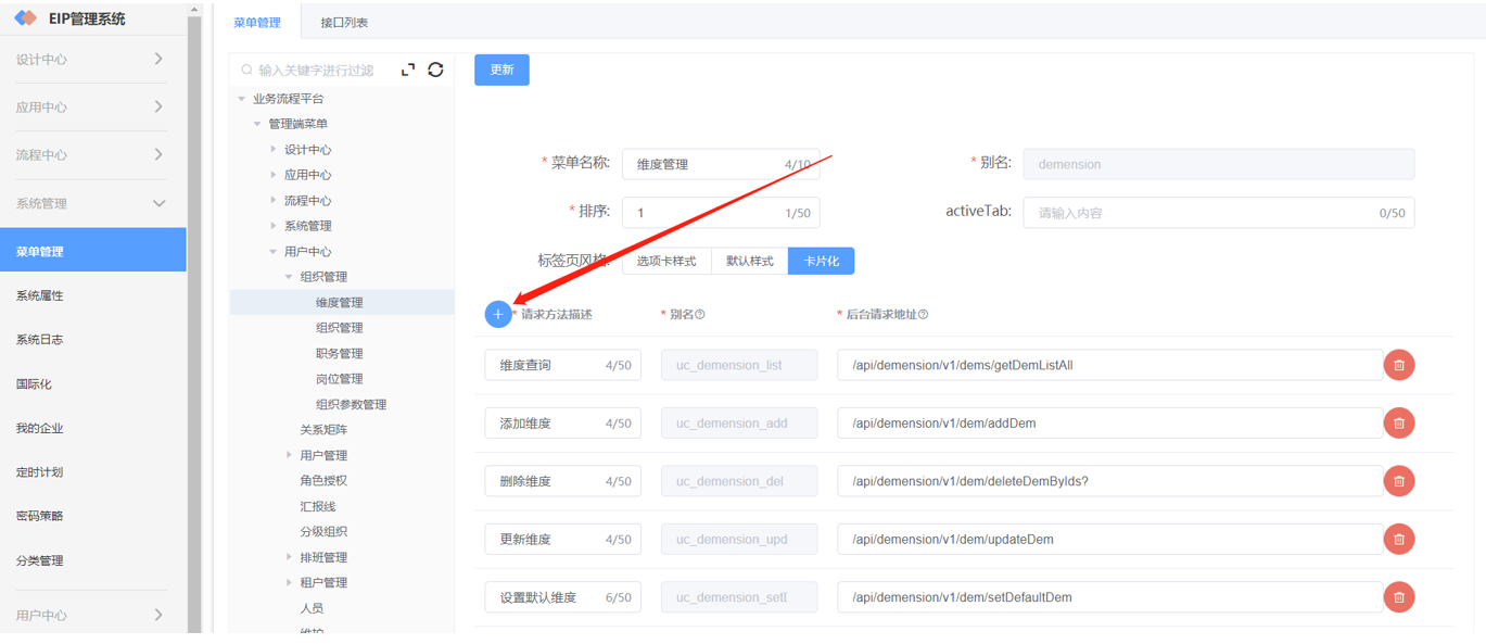 第一步:在菜单管理中找到对应菜单将相关的接口添加