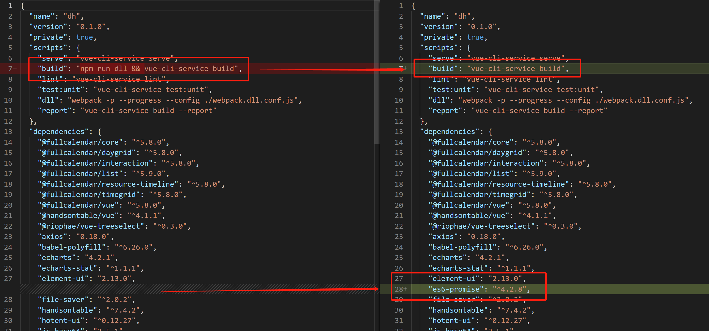(1)package .json 文件中,添加es 6-promise 依赖,b uild 命令行修改。