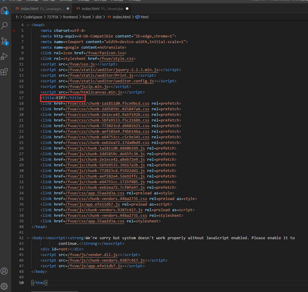 或者修改编译成功后的index.html文