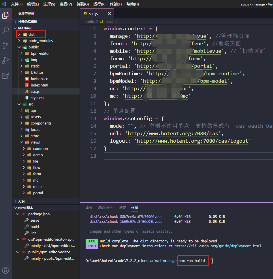 sso.js作为前端请求后端的地址的集合,sso.js文件的位置在public目录下。