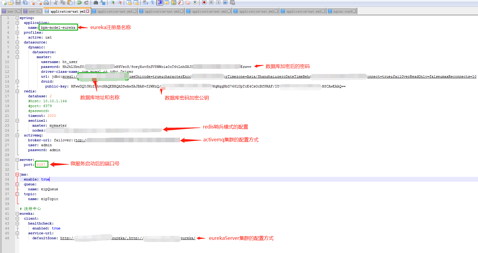 在每个微服务的外置配置文件application-uat.yml底下,添加如下配置信息:(注意yml文件的缩进写法)
