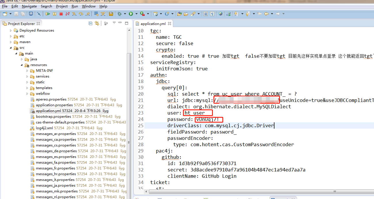配置文件在cas-ninestar项目的src/main/resources下的application.yml。
