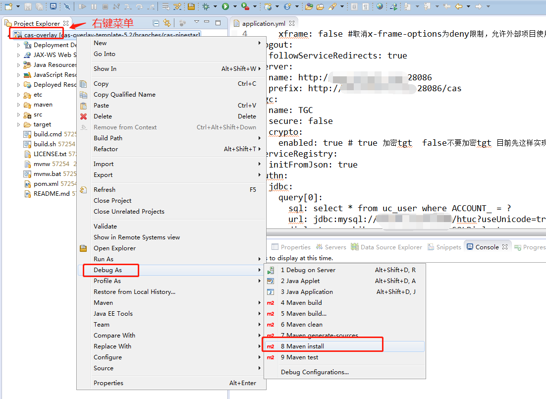 按照下图的指示,把cas项目打出war包。
