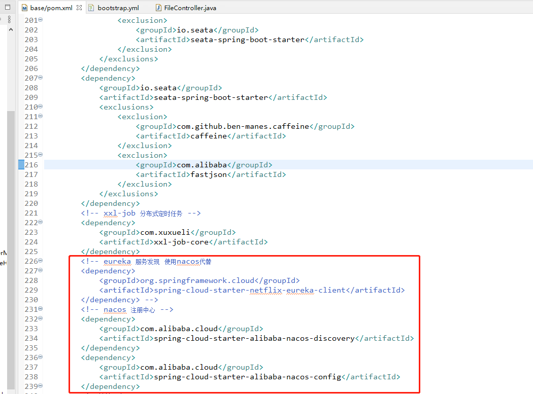 nacos依赖的注释去掉