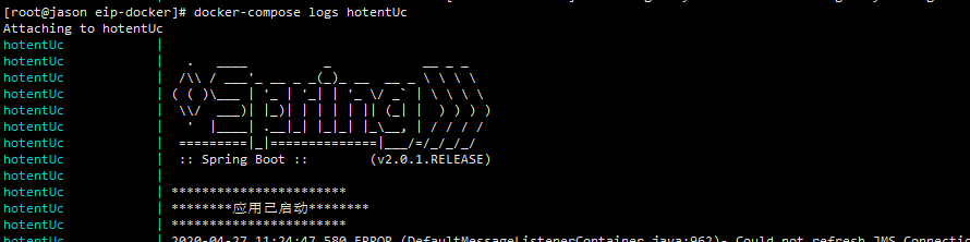 可以通过docker-compose logs hotentBpmModel查看日志内容如下图:
