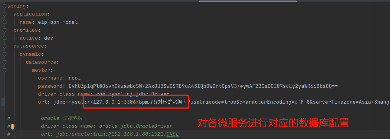修改五个微服务服务的application文件,设置服务对应的数据库