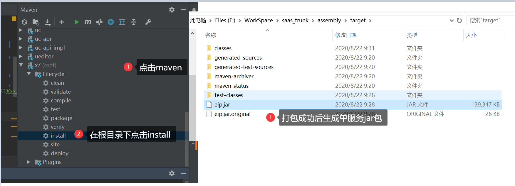 1)将项目下....\pom.xml 这个文件中的assembly 注释(快捷键Ctrl+/)