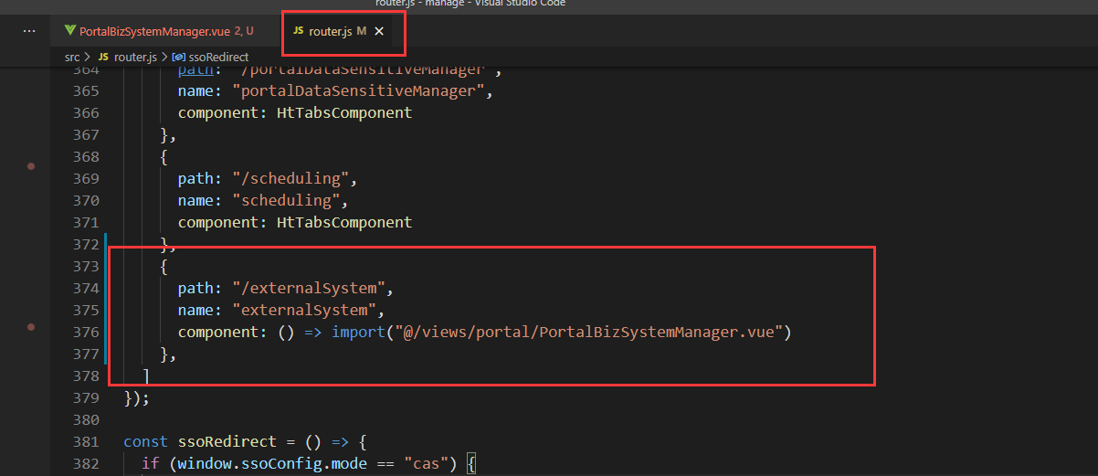 由于我们在菜单管理这一栏,配置了路由,那么我们需要在manger端的router.js下,也要配置相关的路由。