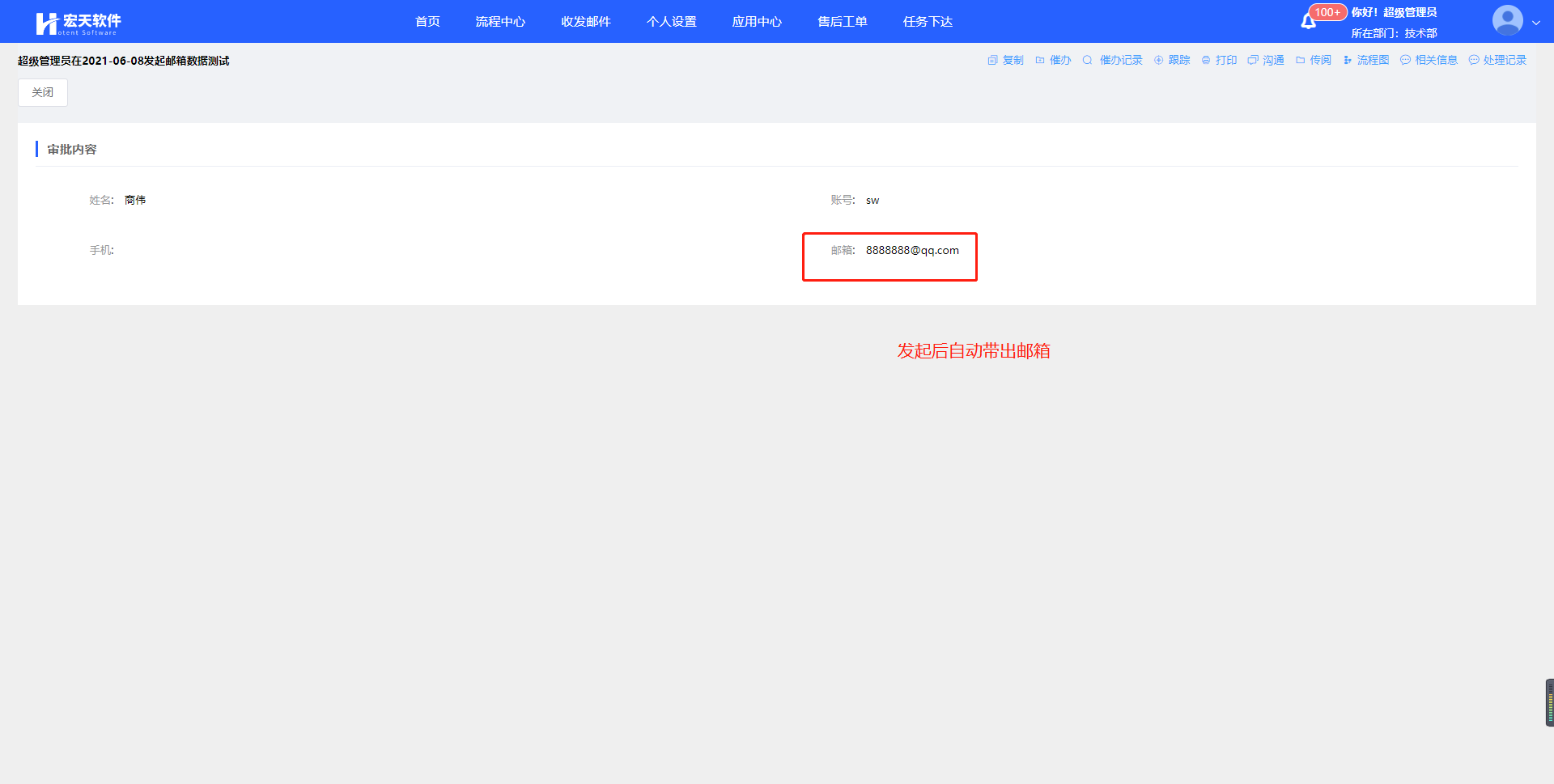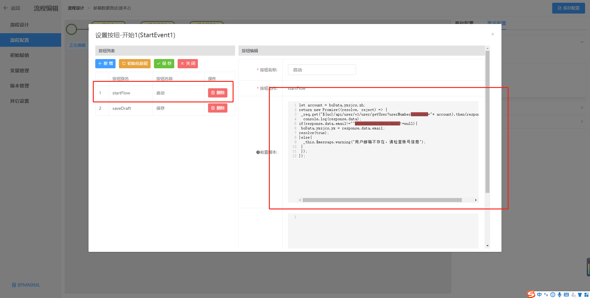 效果:校验表单字段里的账号有没有邮箱,没有的话校验不可发起并且提示,有的话校验可以发起,并且可以自动带出邮箱;