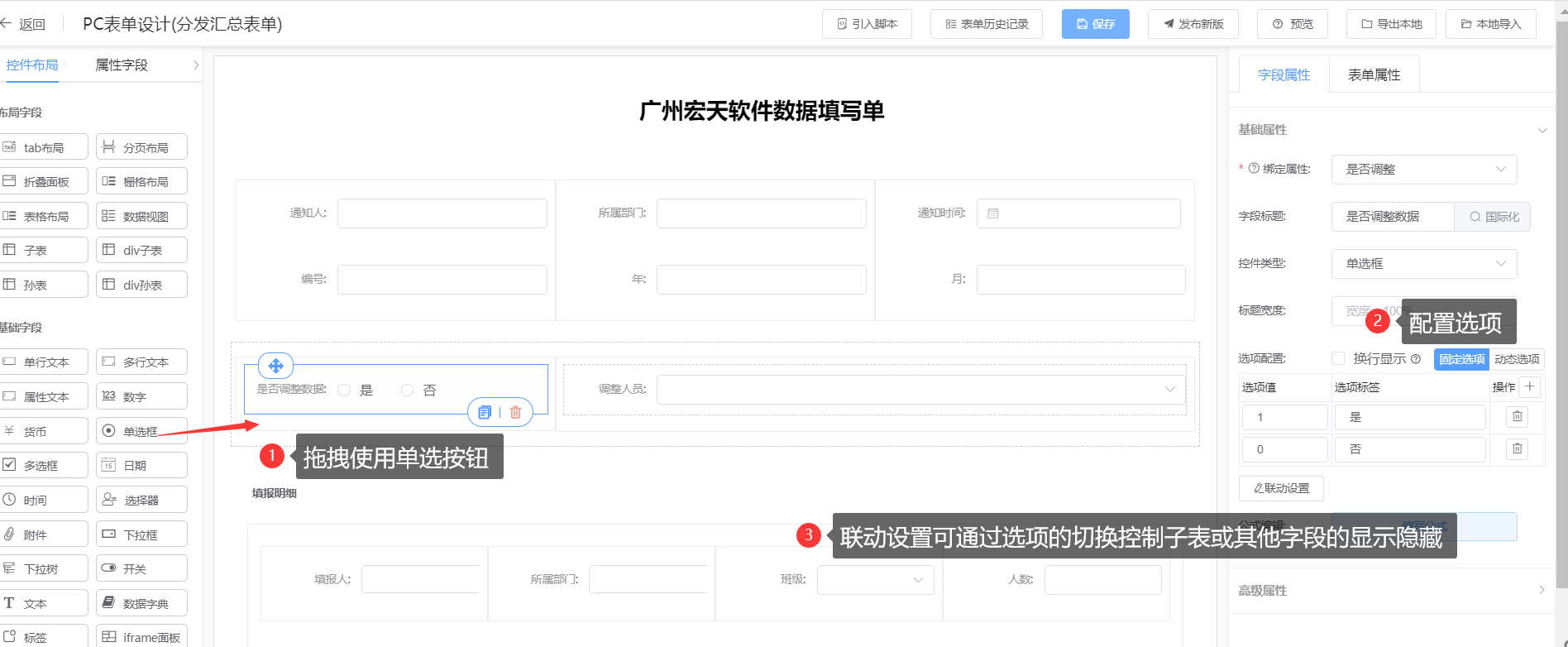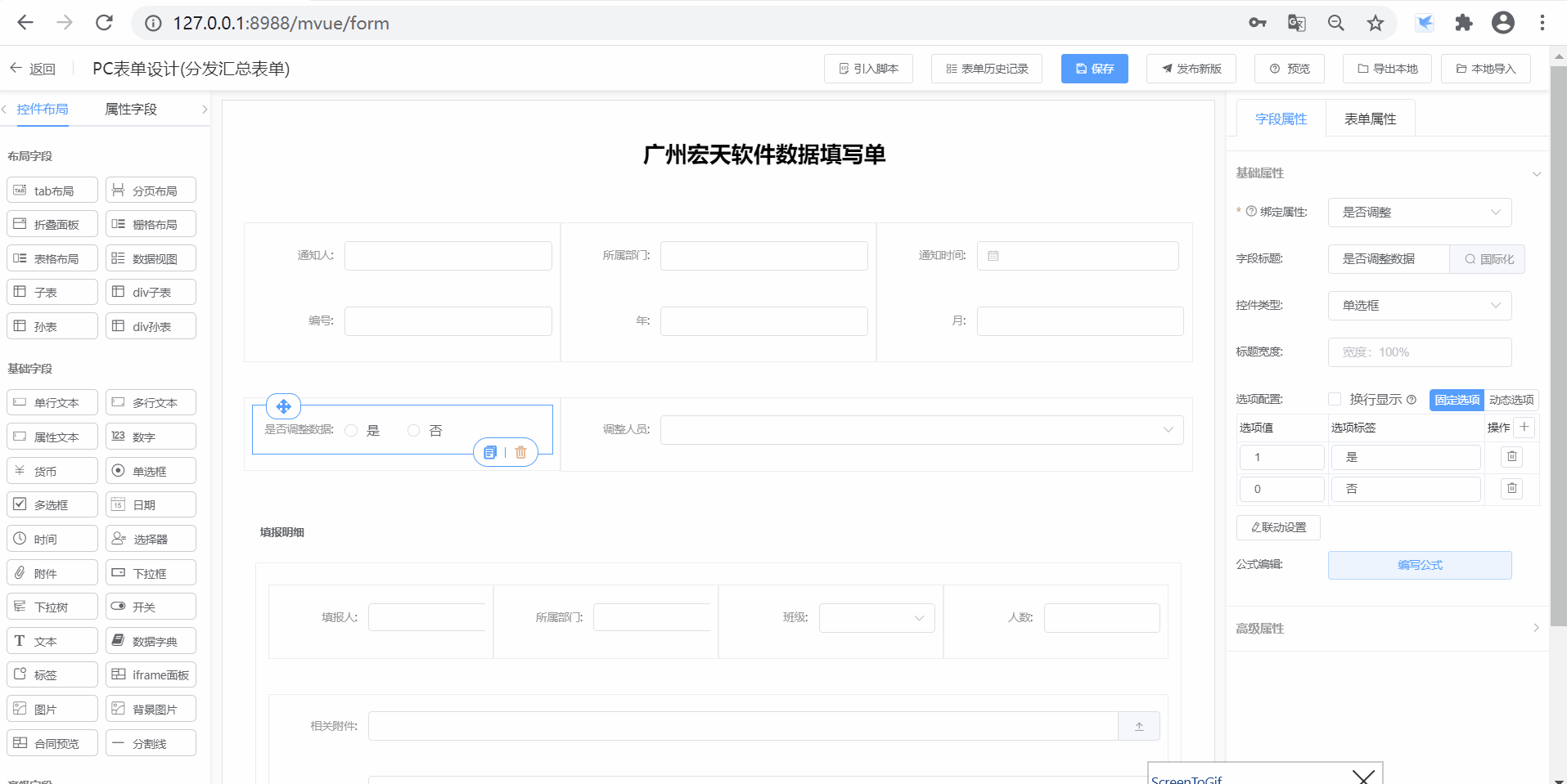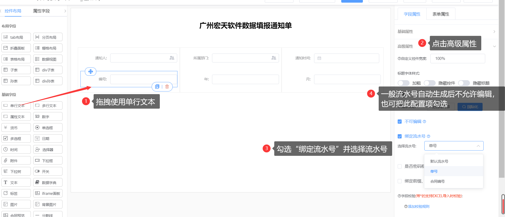 功能1:表单控件:选择器、流水号绑定、单选按钮