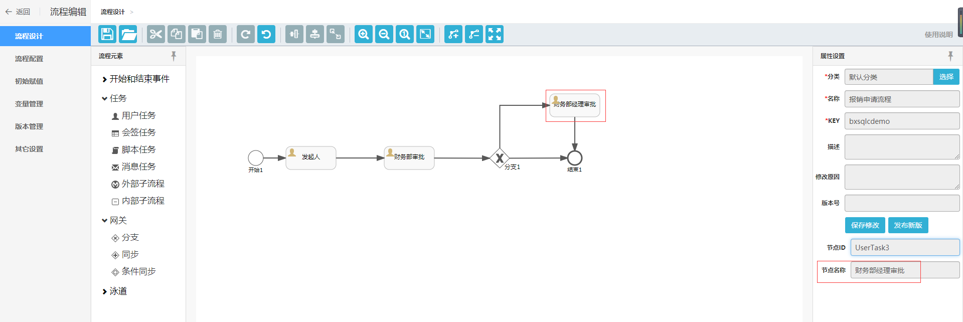 第五步:重复第四步:将“用户任务3”修改为“财务部经理审批”: