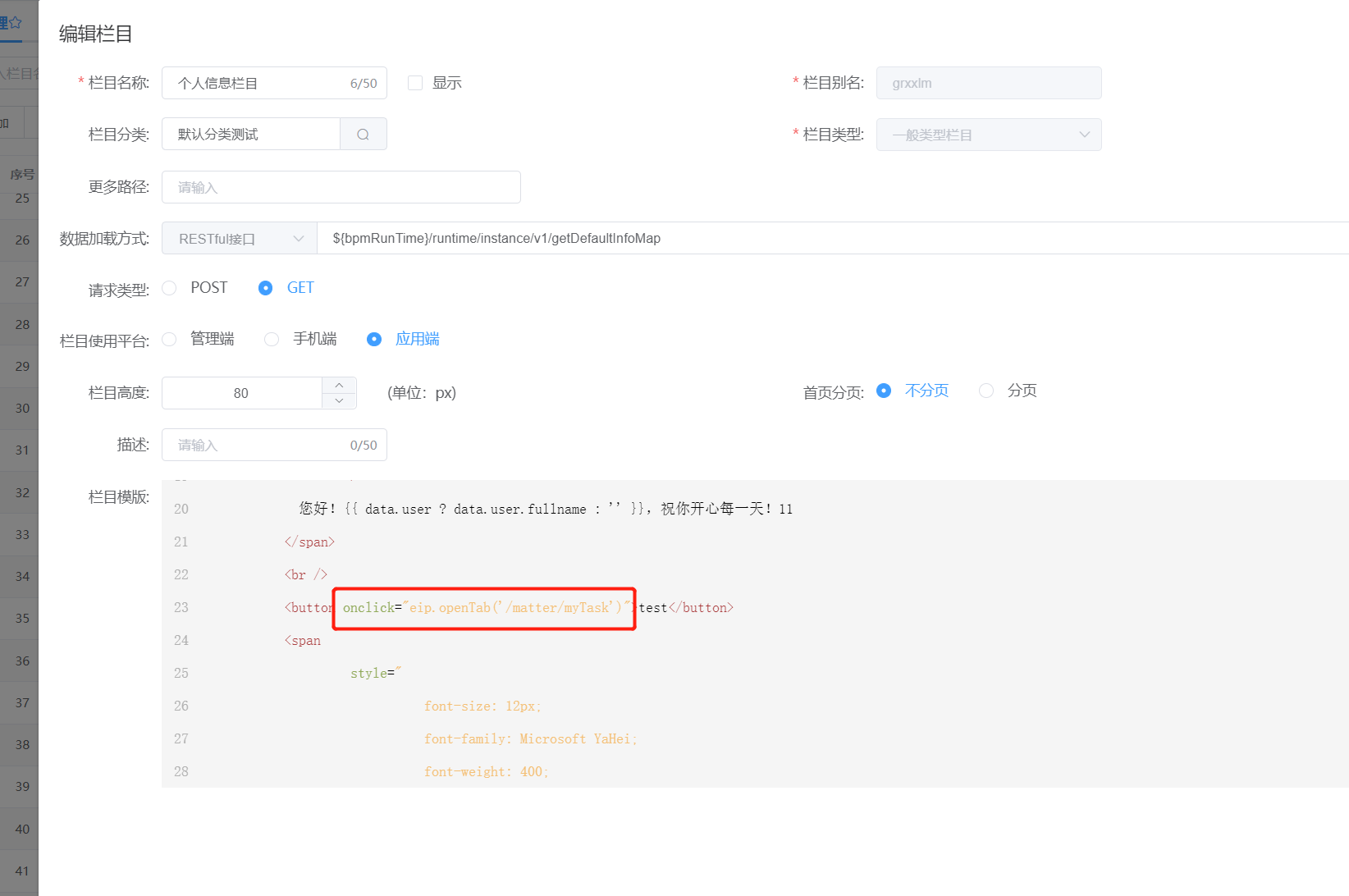 2.在原生js中通过eip.openTab()来调用该工具方法